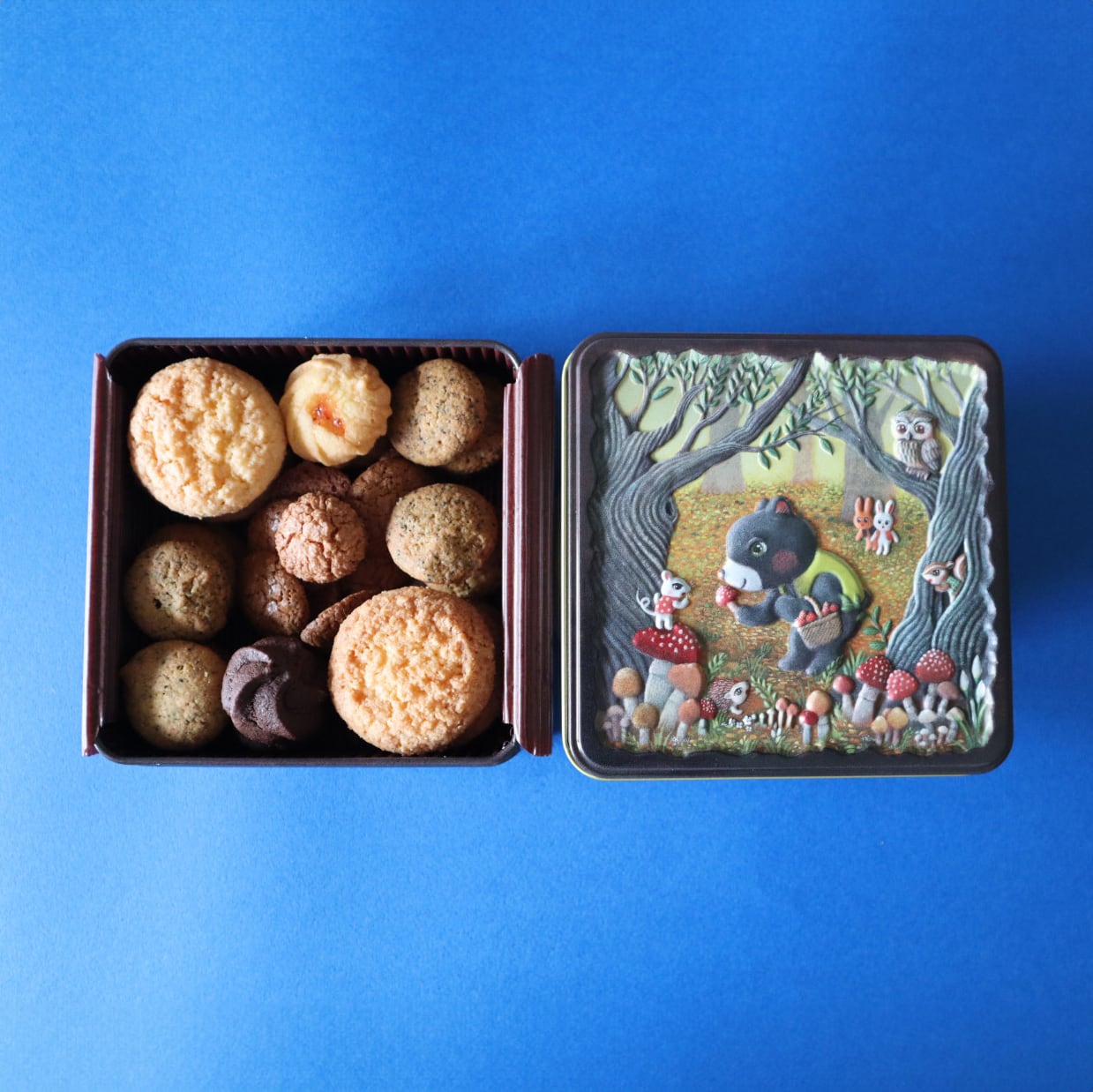 絵本作家のたなかしんがデザインした第二弾の「くまときのこ」缶に、ケントハウスの人気クッキーを詰め込みました。